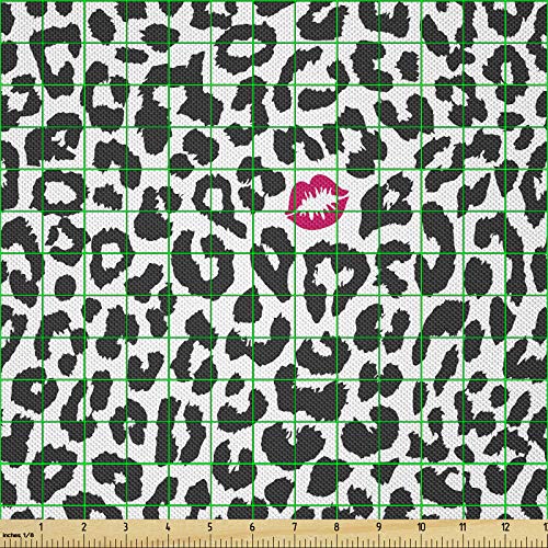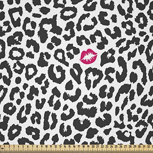 ABAKUHAUS Safari Tela por Metro, Leopardo Estampa Animal con Marca de Beso Lápiz Labial Tendencia Moteado Arte, Satén…