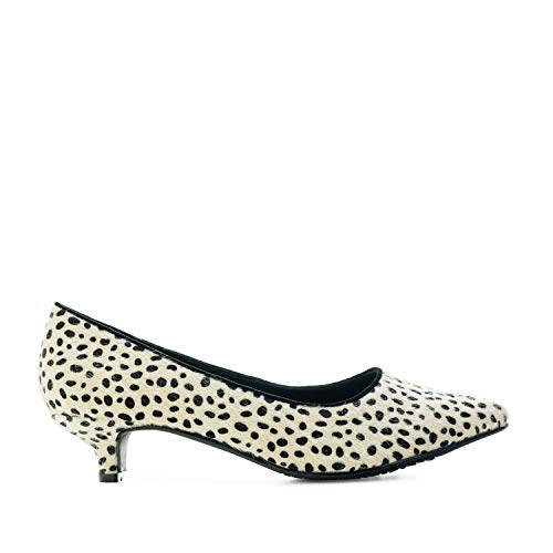Cierre: Zapato de tacón Kitten Hell en ante y estampado diferentes con acabado de punta fina. Cierre sin cordones con sistema slip on para un mayor calce.