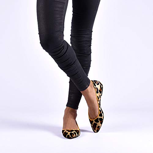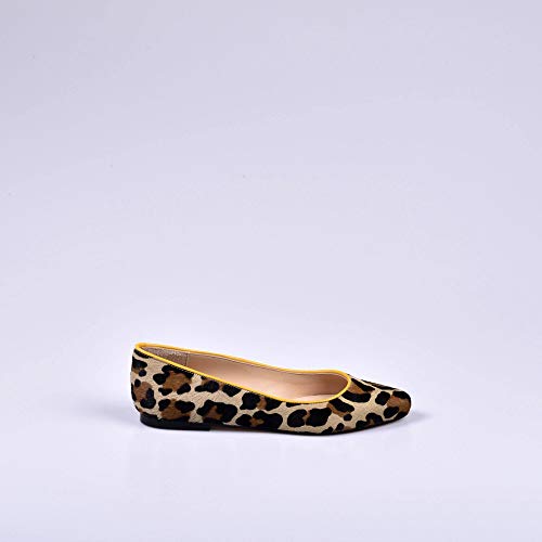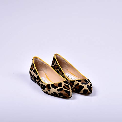 Las Bailarinas Leopardo en Amarillo son parte de la Colección «Animal Print» de Anna Milan, la gran tendencia para vestir tus pies. Han sido fabricadas a mano en España con materiales de primera calidad. Anna Milan las incluye dentro de la última Edición Limitada, en estampado de leopardo y modelo en punta angular. Características de las Bailarinas Leopardo en Amarillo: Exterior: pelo de potro Estampado de leopardo con ribete amarillo Modelo en punta angular Interior: cuero de cabrito Plantillas de gel Suelas de cuero Colección exclusiva limitada Fabricación artesanal en España BAILARINAS LEOPARDO EN AMARILLO AL DETALLE Su exterior, cubierto por pelo de potro, hace de nuestras Bailarinas Leopardo en Amarillo un modelo elegante a la par que atrevido. Su forro interior, pensado para prestarte la mayor comodidad y resistencia, está elaborado en cuero de cabrito. Este, permite una gran flexibilidad al paso y confort al tacto por su suavidad. Incorporan plantillas de gel, también producidas en cuero de cabrito. Con las que consigues el máximo bienestar al andar, ya que reducen el impacto del pie contra el suelo. Este modelo se presenta con ribete en color amarillo. Y para hacerlas únicas, hemos realizado su acabado con suelas de cuero.
