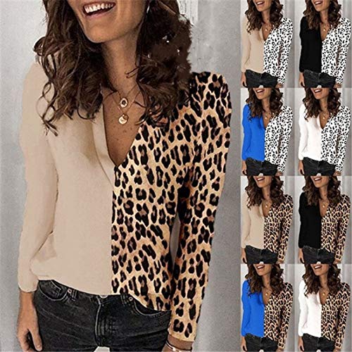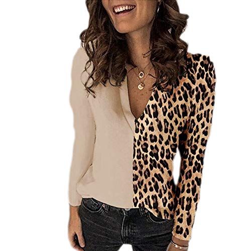 Beaufident Beaufident Blusas y Camisa Mujer Leopardo con Cuello en V Mangas de Largas Camisetas Mujer Tops OL oficina Casual