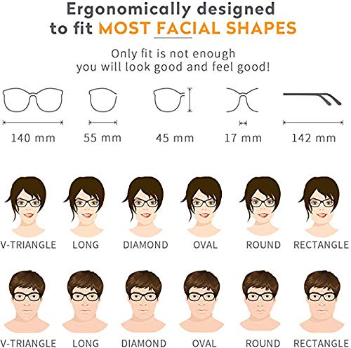 MATERIAL: Este marco tiene las ventajas de super ligereza, resistencia a la abrasión, bajo coeficiente de fricción, etc. Puede proteger eficazmente nuestros ojos y caras del daño causado por la fractura y la fricción del marco de las lentes en el movimiento. Además, la bisagra de metal es más estable.