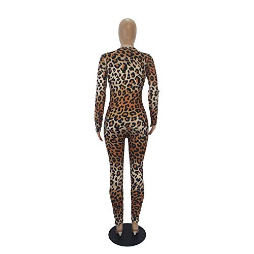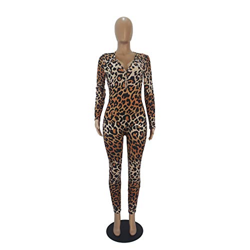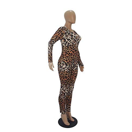 Mono de cintura alta con cuello en V para mujer, mameluco informal con estampado de leopardo, pantalones largos de manga larga Ropa para el hogar