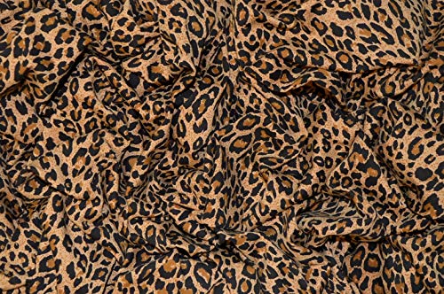 Estampado de leopardo marrón en una sola tela de jersey. Esta tela es el peso de un material ligero y se puede utilizar para ropa, artes y manualidades, fundas de cojín, etc. y es ideal para disfraces. Suave al tacto y la elasticidad se encuentra en el ancho de la tela. Tejido de excelente calidad a un gran precio.