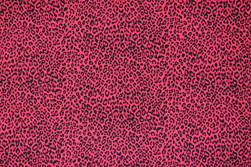 Estampado de leopardo color rosa en tela sencilla de punto. Esta tela pesa lo mismo que una camiseta ligera, puede utilizarse para confeccionar prendas, manualidades, fundas de cojines, etc., y es ideal para disfraces. Suave al tacto y con elástico en el ancho de la tela. Tela de excelente calidad a un precio extraordinario.
