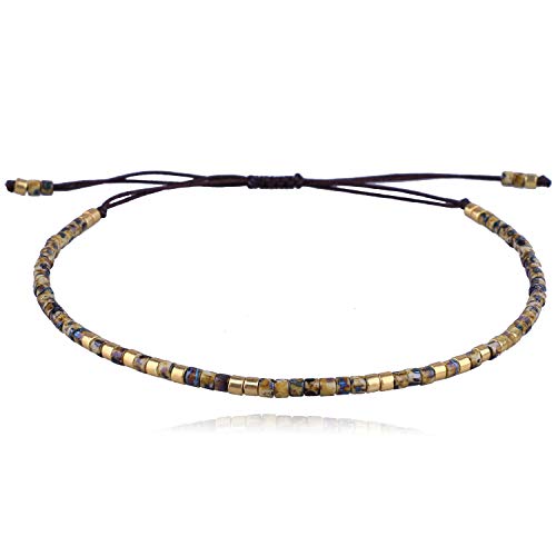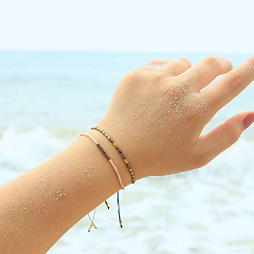 ❤️MATERIAL❤️Gotas de semillas, cordón encerado. Pulseras artesanales de dos hileras o tobilleras de playa. Diseño sencillo con brazalete tejido, Zircon en brazalete trenzado, trajes de pulseras hechas a mano para todas las edades.