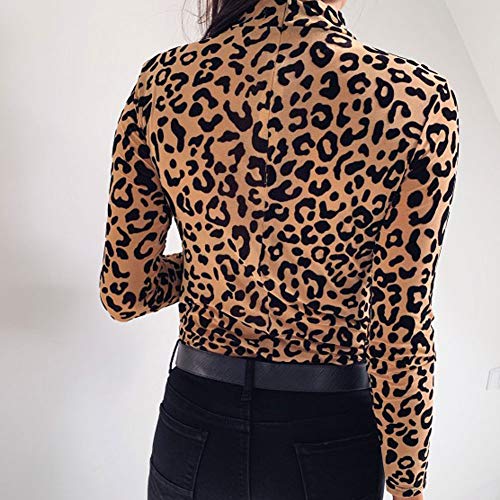 Camisa para Mujer Blusa Top de Manga Larga Cuello Alto Estampado de Leopardo Slim Casual Sexy Fashion
