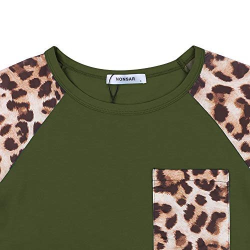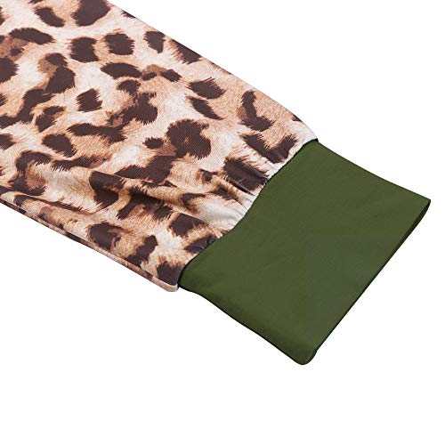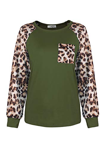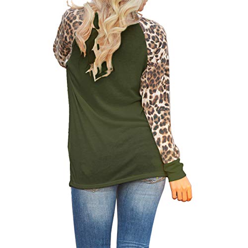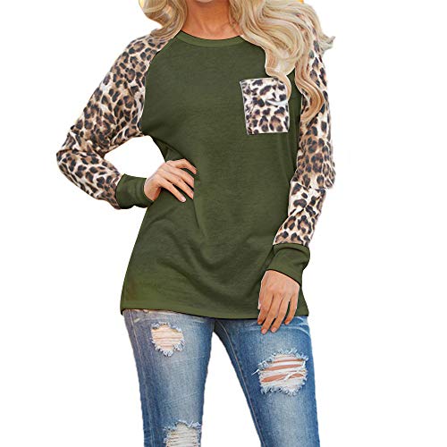 Camiseta de manga larga para mujer, diseño de leopardo, cuello redondo, estilo informal