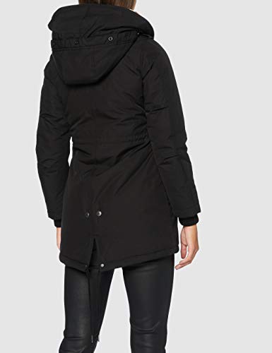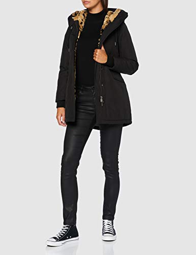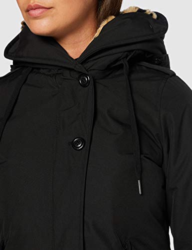 Parka para mujer con capucha de piel sintética y ribete de piel sintética