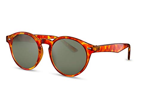 Elegantes gafas de sol con lentes redondo, espejo. Especialmente adaptados a las caras cuadradas. Estas gafas ofrecen protección de UV de categoría 3 100%.