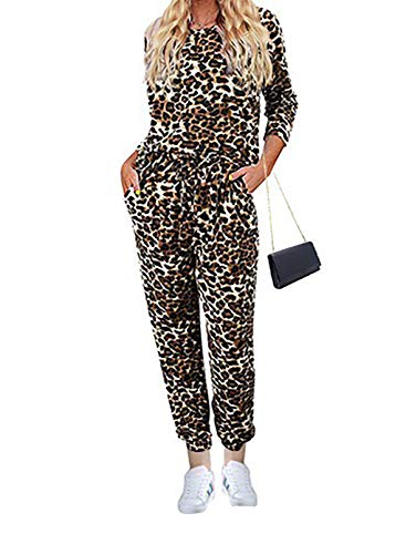 CORAFRITZ Conjunto de pijama casual de leopardo de manga larga y pantalones largos, 2 piezas