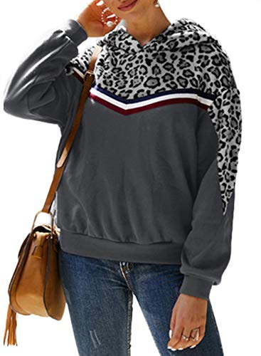 CORAFRITZ Sudadera con capucha para mujer de manga larga con estampado de leopardo