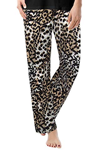 Pantalones largos de pijama de corte ancho de viscosa suave. Diseño de impresión elegante. 2 bolsillos laterales y cordones de color liso en la cintura.