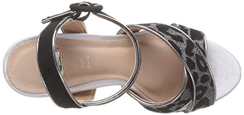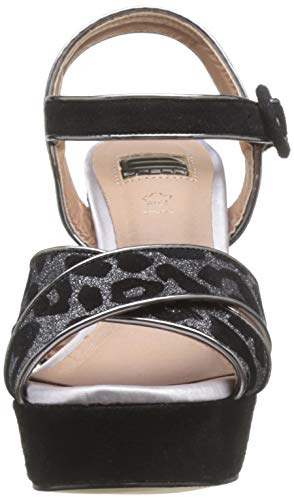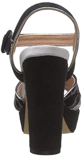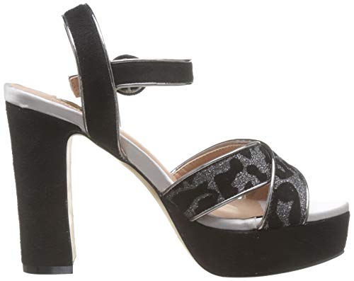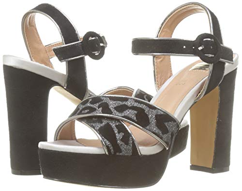 Sandalia de tacón con plataforma de la marca Eferri Con un exterior de antelina. En la puntera tiene dos tiras de antelina entrecruzadas con animal print de Leopardo para sujetar el pie. El cierre de hebilla está a la altura del tobillo. Plantilla de piel para aportar comodidad durante el día.
