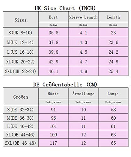 Talla XL: Busto: 42.9, Longitud de la manga: 4.7, Longitud: 24.8.