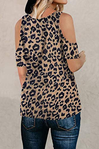 TEJIDO: Hecho de 95% poliéster y 5% elastano. La parte superior de los hombros es suave, cómoda y no pegajosa, elástica, respetuosa con la piel y ultra suave. Ajuste suelto y diseño de leopardo puede ocultar todas las formas del cuerpo, muestra tu belleza en pequeñas blusas de hombro desnudo.