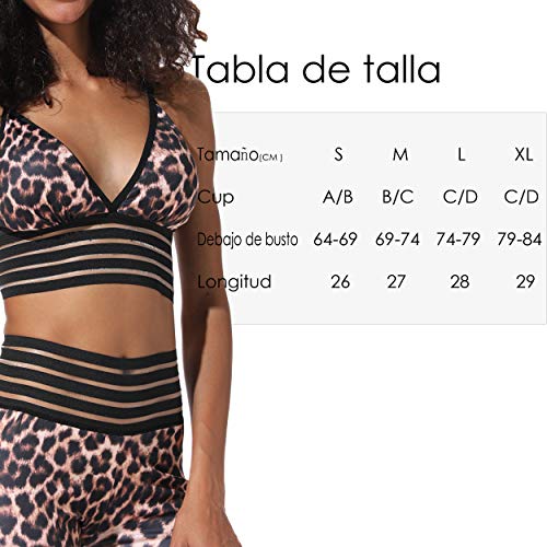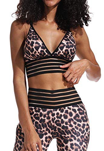FITTOO Tops Yoga Sujetador Mujer con Relleno Acolchado Deportiva #4 Leopardo M