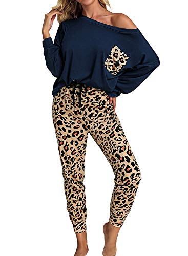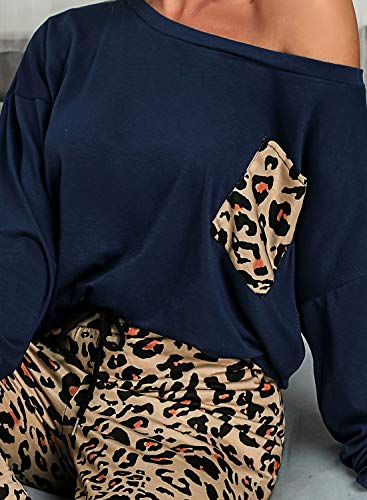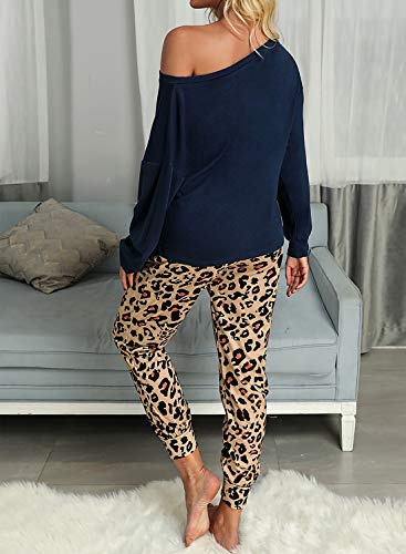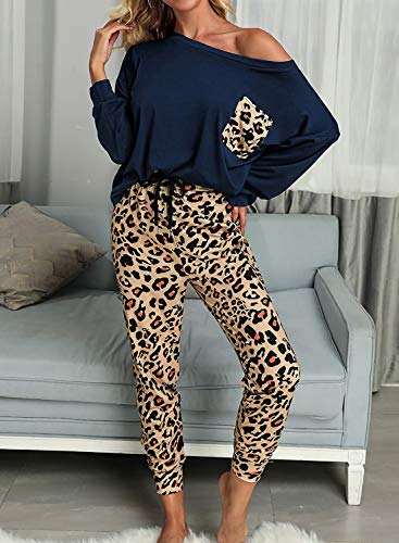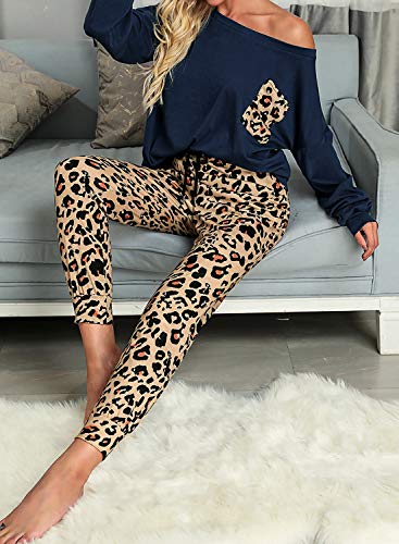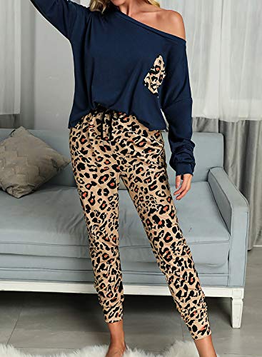 Característica: manga larga, estampado de leopardo, cuello redondo, ajuste casual, la parte inferior de los conjuntos de PJ cuenta con banda elástica en la cintura que te hace cómodo y no apretado en absoluto y fácil de poner y quitar.