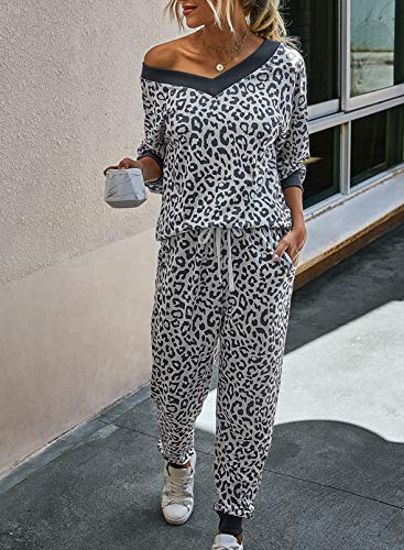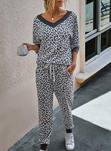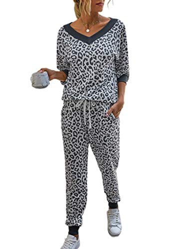 FOBEXISS Pijamas para las Mujeres PJ Conjuntos Ropa de Dormir Pantalones de Leopardo Bolsillos Señoras Pijamas de…