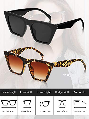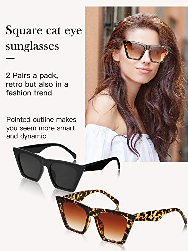 Diseño vintage y de moda: ambas gafas de sol cuadradas de moda están diseñadas en una forma suave hacia arriba, que es una interpretación moderna de un estilo clásico de ojo de gato, retro pero también en una tendencia de moda; el contorno puntiagudo te hace parecer más inteligente y dinámico