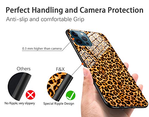 F&X Funda para iPhone 12/iPhone 12 Pro, diseño de leopardo, con protección de cámara, antideslizante, para mujer