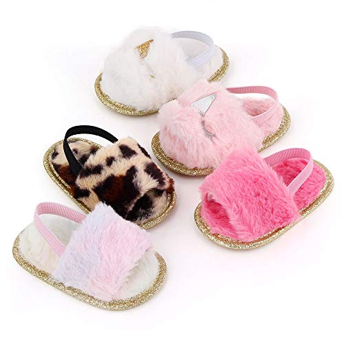 Sandalias de felpa para bebé, zapatillas de bebé prewalker para niños con suela suave de piel sintética con correa elástica en la parte trasera.