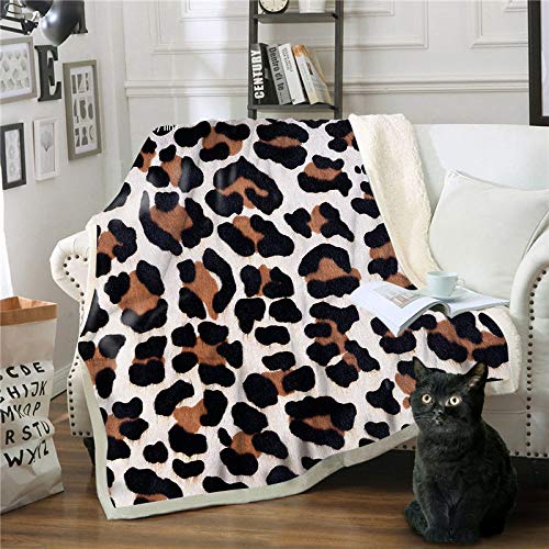 GIERTTR Mantas,Patrón De Leopardo Garabato Marrón Diseño 3D Manta Impresa De Estilo Nórdico para Niños Adolescentes…