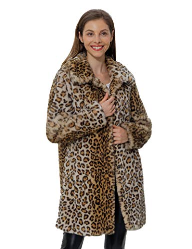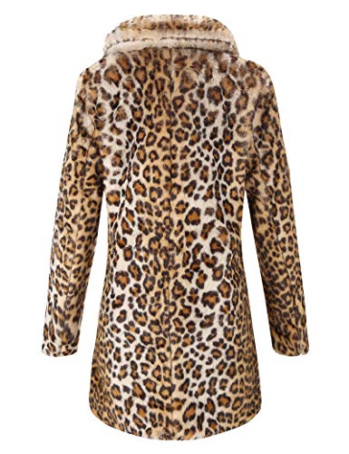 Giolshon Chaqueta de Piel Sintética para Mujer con Estampado de Leopardo, Abrigo Largo Cálido y Esponjoso para Invierno