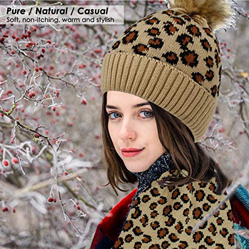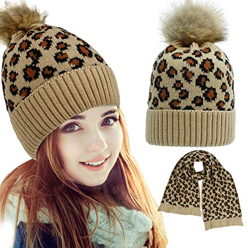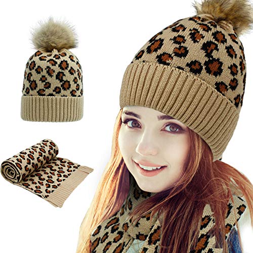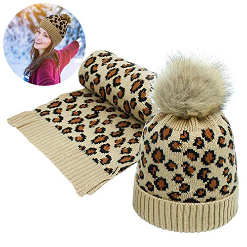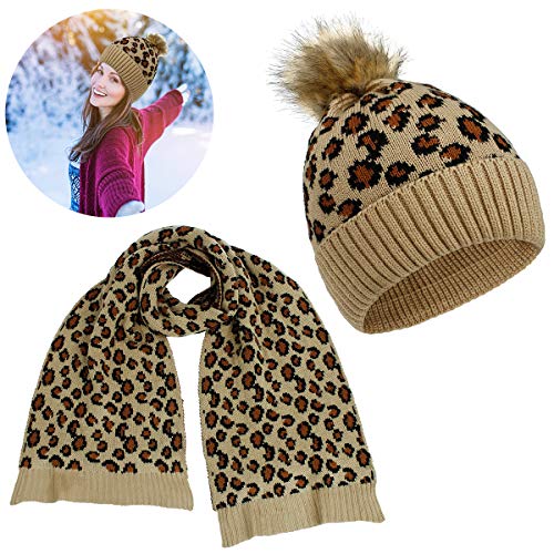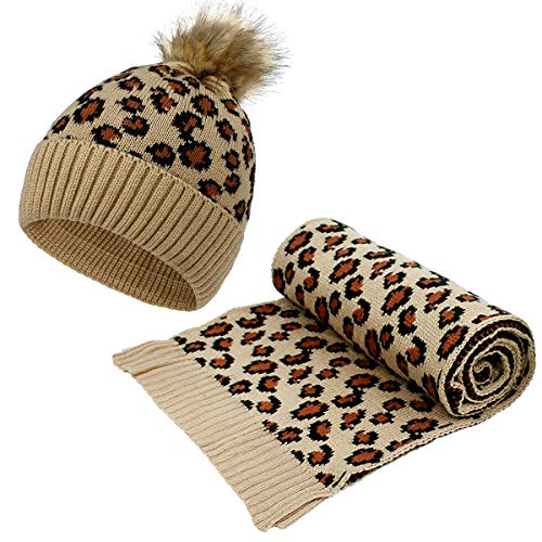 Conjunto de gorro y bufanda con estampado de leopardo de moda para calentar la cabeza y el cuello.