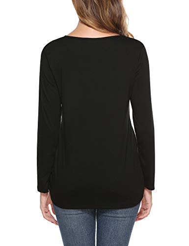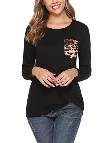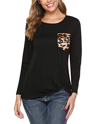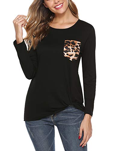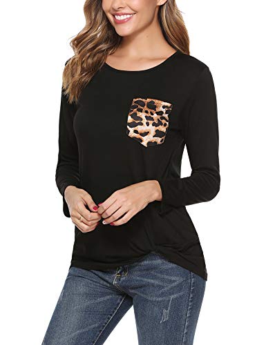 iClosam Camisas Mujer Manga Larga de Cuello Redondo Casual Blusas Tops del Camisetas con Bolsillo en el Pecho de…