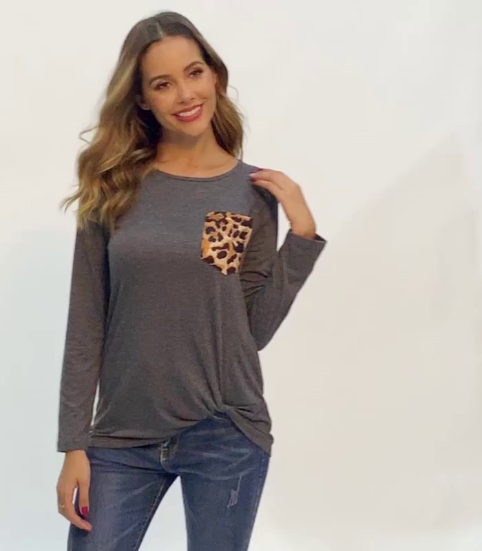 Características: ajuste holgado casual, cuello redondo clásico y bolsillo frontal, color liso, top de manga larga casual con dobladillo frontal arrugado y arrugado