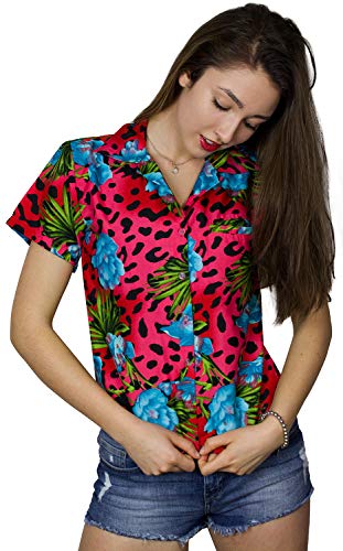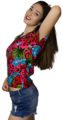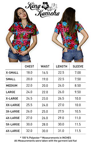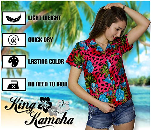 King Kameha Funky Hawaii – Blusa hawaiana para mujer, manga corta, bolsillo frontal, estampado hawaiano, flores