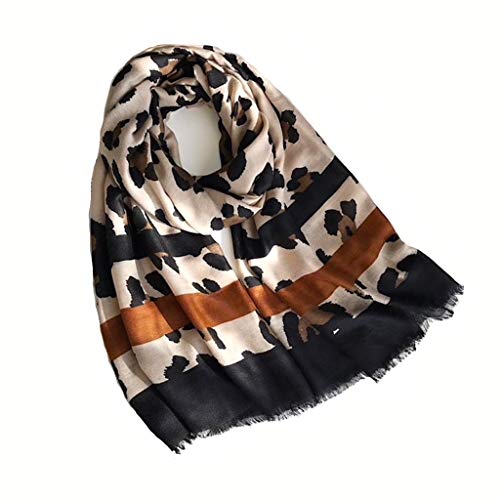 Kustom Factory – Pañuelo para mujer, diseño de leopardo, color negro y marrón (90 x 180 cm)