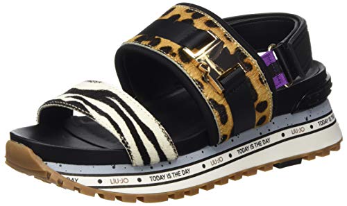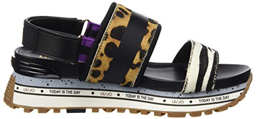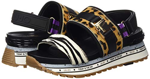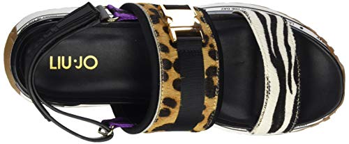 Liu Jo Wonder Maxi 06-Sandal Leopard, Sandalias con Punta Abierta Mujer