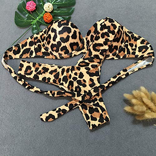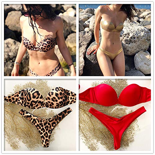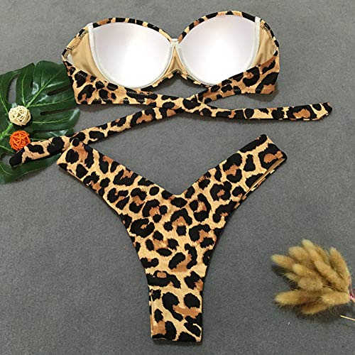 Loalirando Bikini bandeau push up para mujer, hombros descubiertos, con estampado de leopardo