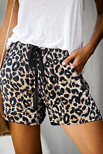 Mosucoirl Mujeres Cómodos Cordones Casual Cintura elástica Pantalones cortos de color puro con bolsillos
