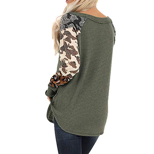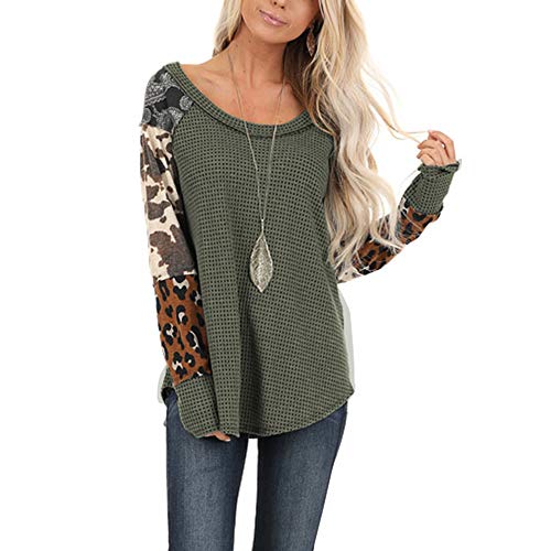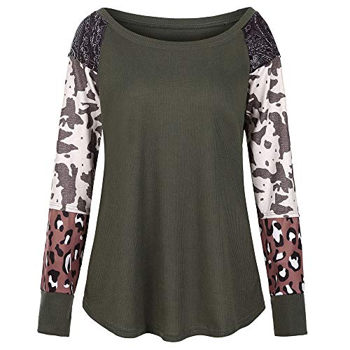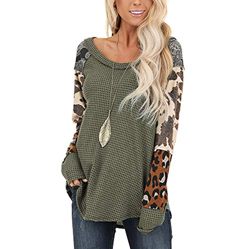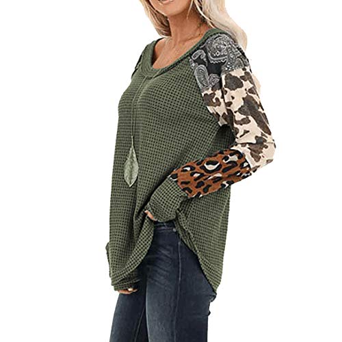 Mujer Cuello redondo Leopardo Manga larga Raya Color Bloque Casual Camiseta suelta Tops Camiseta Sudadera T-shirt Pullover