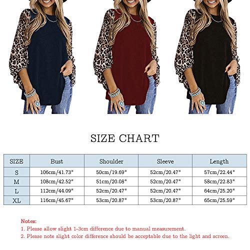 Tejido —- Camiseta Leopard Patchwork para Mujer, 65% algodón y 35% poliéster, esta túnica de otoño para mujer es ultra suave y ligera, cómoda y transpirable.