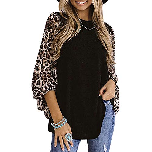 Mujer Leopardo Sudadera Camiseta Manga Larga Color Bloque Labor de Retazos Jersey Tops Patchwork De Leopardo Tops De…