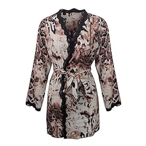 Bata De Satén Para Mujer,Día De San Valentín Lencería Sexy Seda Babydoll Sedoso Bata Vestido Con Estampado De Leopardo…