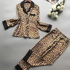 MIYAA Pijama De Satén para Mujer,Conjunto De Pijama De Seda Satinada,Lencería De Encaje De Leopardo Sexy,Ropa De Dormir…