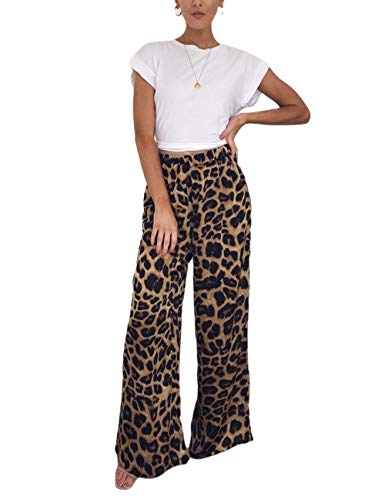 Diseño: pantalón ancho, estampado leopardo y serpiente, evasé, cintura alta y elástica, palazzo.