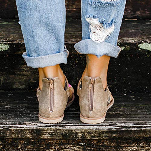 ORANDESIGNE Sandalias Mujer Verano 2020 Cuña Fondo Plano Sandalias Punta Abierta Cuero Retro Zapatos Tacón Plano…