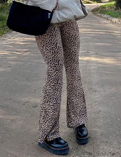 A juego: pantalón de vuelo con estampado de leopardo, perneras estrechas y anchas, combinado con tops cortos, camisetas, camisetas de tirantes, etc.