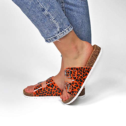 Chanclas estivales para mujer efecto barniz colores fluorescentes.