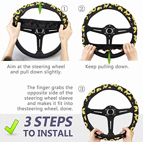 Totalmente forrado con material antideslizante para un ajuste seguro. Un mejor agarre en el volante le da más control en la carretera. Fácil instalación: no requiere herramientas, se estira para adaptarse a volantes estándar de 14 a 15 pulgadas de diámetro. Protege tu volante original del desgaste, el material de neopreno protege tus manos del calor en verano y del frío en invierno. Transpirable, cómodo, se mantiene seco, antideslizante, diseño ergonómico de lujo, lavable a máquina, adecuado para todas las estaciones.