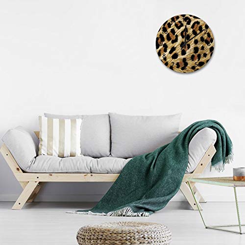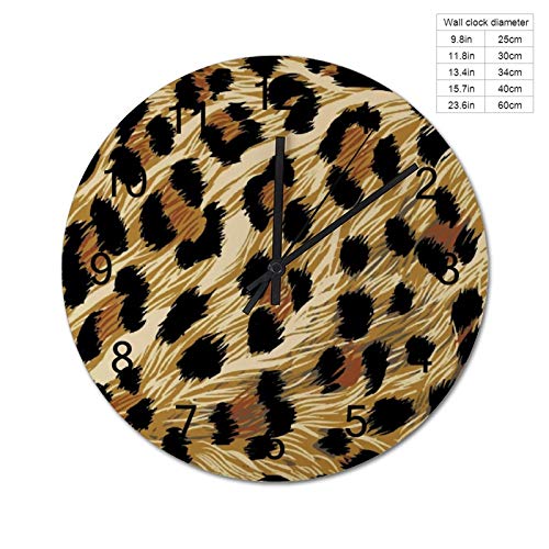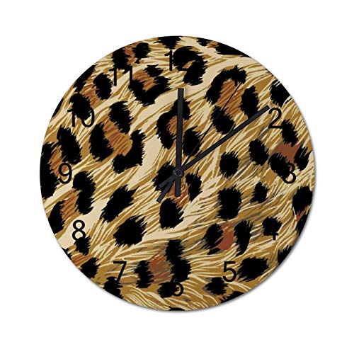 Reloj de pared con diseño de leopardo, color beige, diseño de madera silencioso, reloj de pared, redondo, no hace tictac…