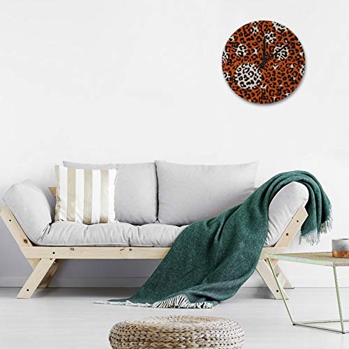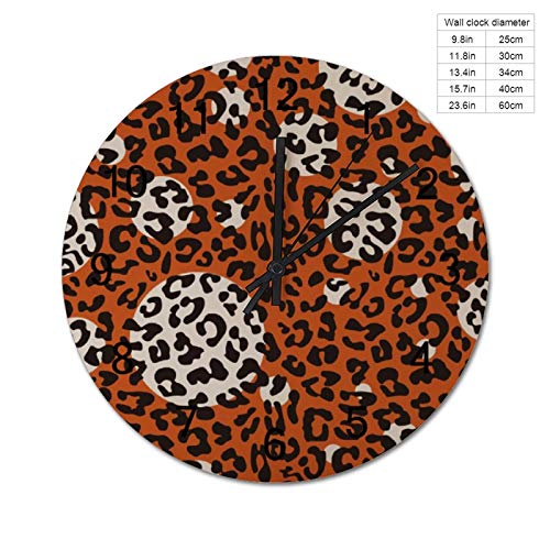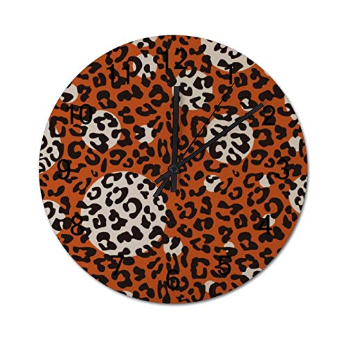 Reloj de pared con diseño de leopardo, color naranja, de madera, para decoración de pared, redondo, no hace tictac, para…