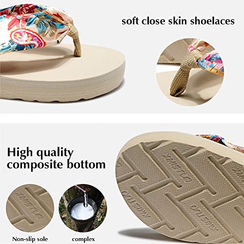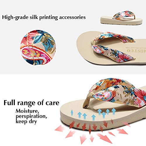 COCOHOME Sandalias Mujer Verano, Estilo Bohemio cinta seda decorado, Zapatillas Antideslizantes de playa