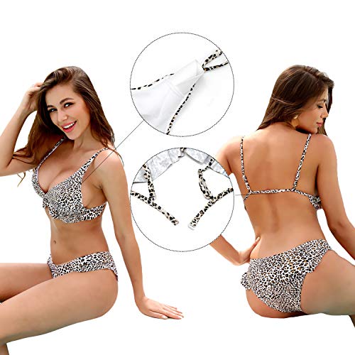 【TOPS】 – La parte superior del bikini tiene copas triangulares cruzadas y bordes con volantes. El escote en V profundo embellece la curva del busto y el escote. Sexy pero lindo. Resalta tu encantador glamour.