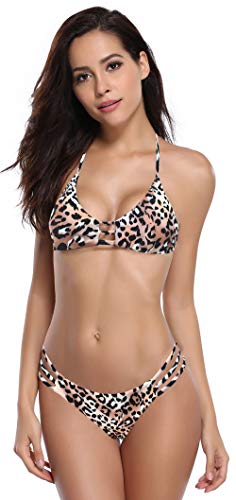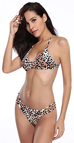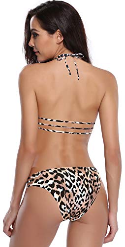 SHEKINI Mujer Halter Brasileño Estampado Bikini Set Relleno Trajes de Baño Malla Bañador